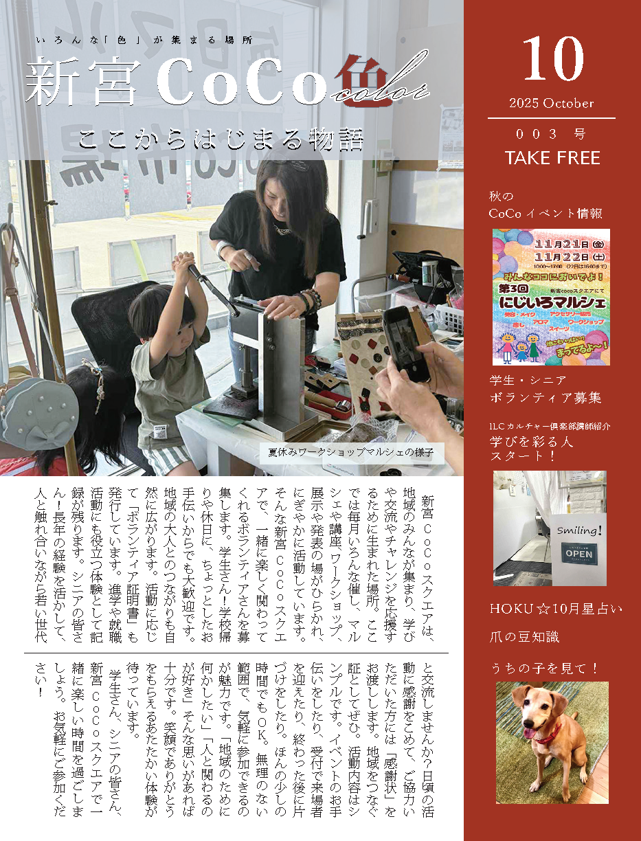 地域の学びとつながりを応援する、新宮CoCoスクエア発のフリーペーパー『新宮CoCo色』。