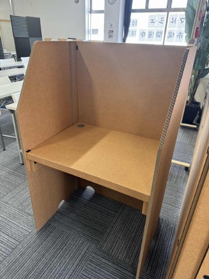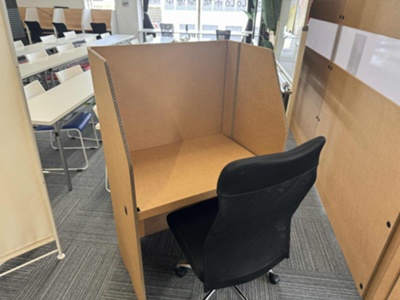その中で、「誰でも安心して集中できる空間づくり」が課題として挙がり、軽く・簡単で・どこでも設置できるデスクを開発。