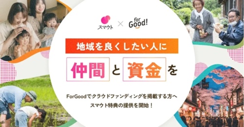 メディア掲載のお知らせ「For Good、地域とつながるプラットフォーム「スマウト」と連携。地域に関わりたい人と挑戦者を繋ぎ、仲間と資金を集める新たな仕組みを提供」に掲載されました。