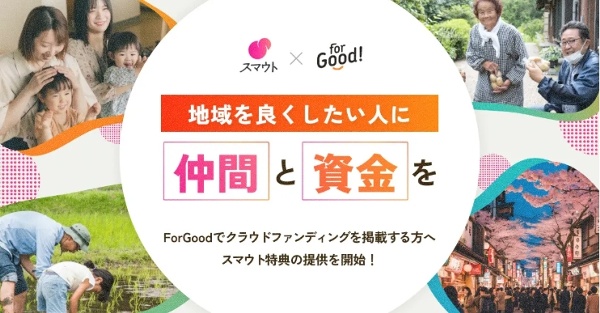 「For Good、地域とつながるプラットフォーム『スマウト』と連携。地域に関わりたい人と挑戦者を繋ぎ、仲間と資金を集める新たな仕組みを提供」 です。