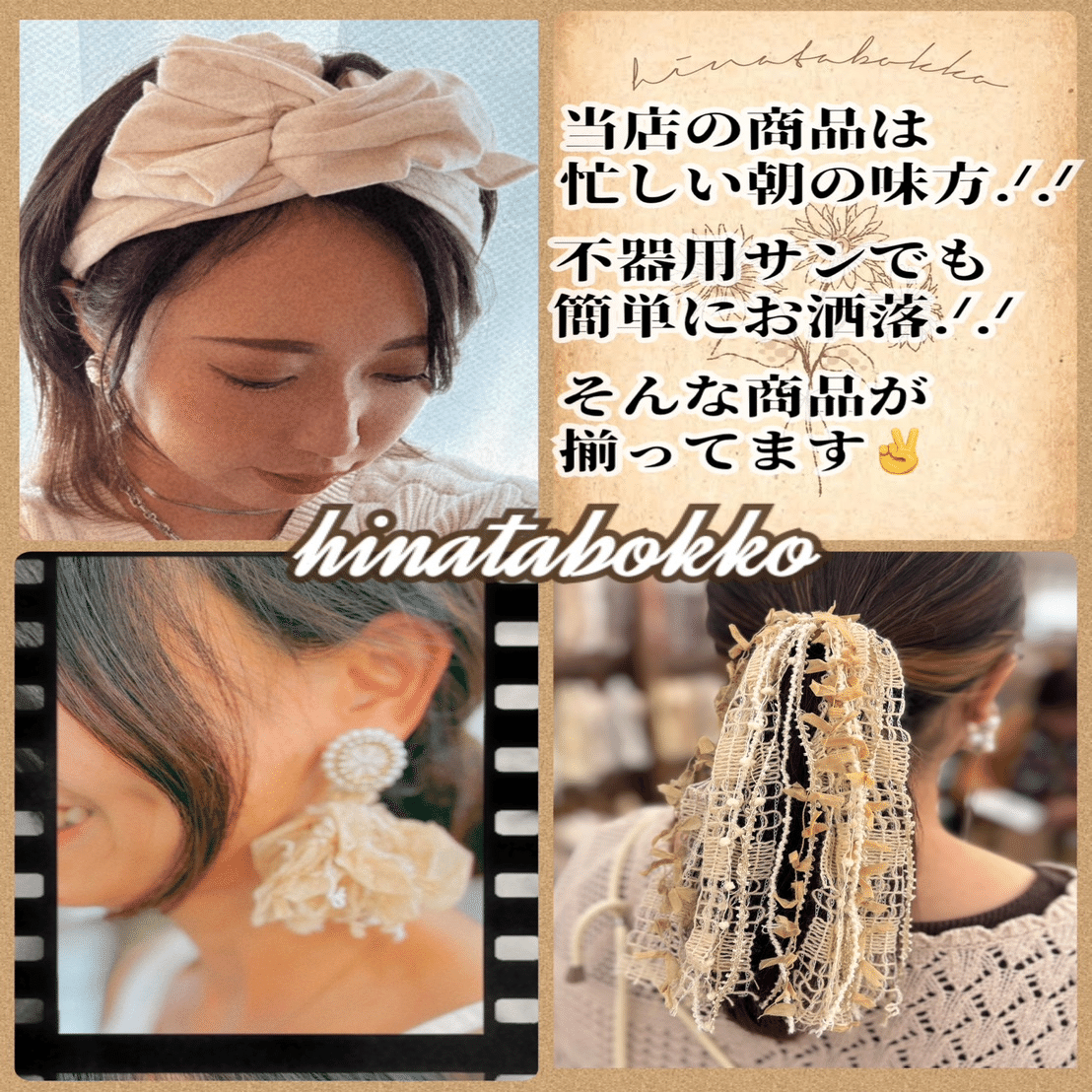 レースや刺繍リボンにパールやビーズをあしらった、繊細で可憐なアクセサリー。