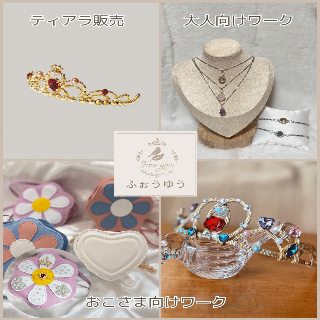 子ども向けティアラ作りや大人向けブレスレット体験、バッグデコレーションなどを予定しています。