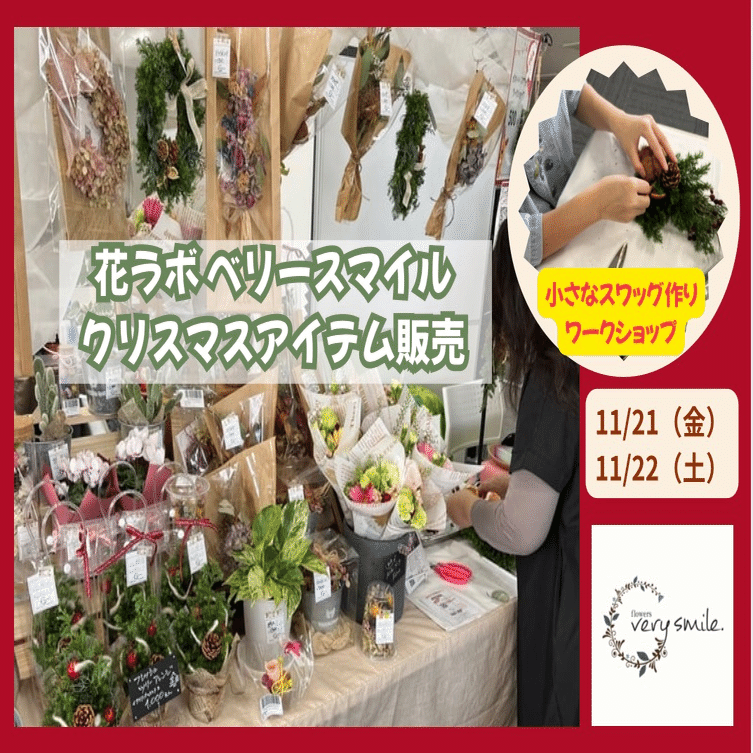 季節の生花を使った販売に加え、クリスマス関連のワークショップを開催予定。
