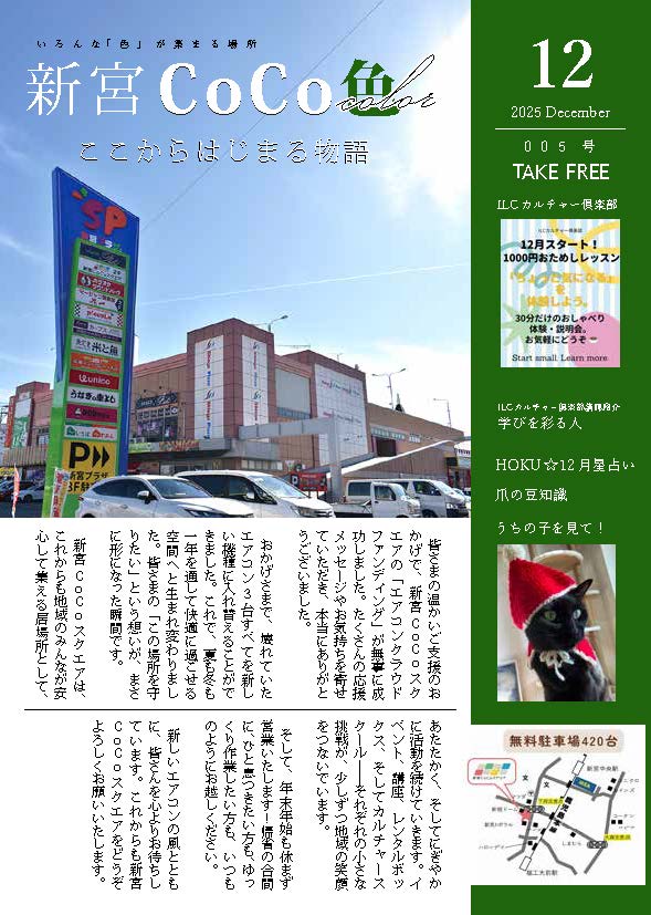 今月号も、新宮CoCoスクエアを中心に展開されるさまざまな活動や人々の思いを、ぎゅっと詰め込んだ内容となっています。紙版は施設内で配布中、PDFでもご覧いただけます。どちらの形でも、ぜひ手に取ってお楽しみください。
