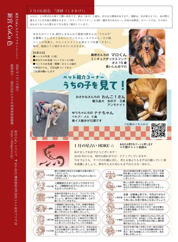 新宮CoCoスクエアのフリーペーパー 「新宮CoCo色」1月号(2026年・006号) が完成しました。