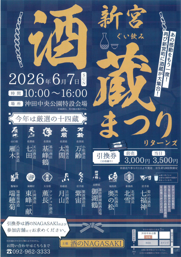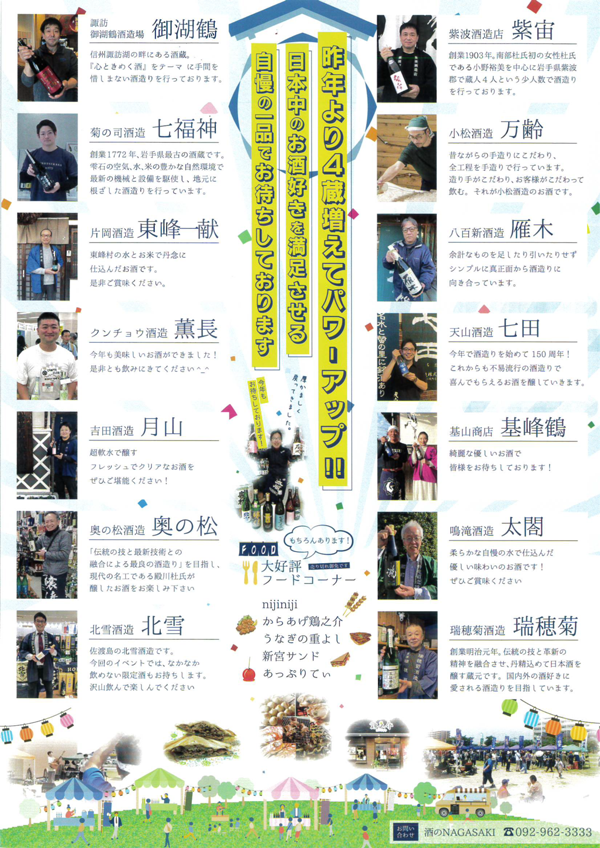 昨年も多くの方でにぎわった人気イベントですが、今年はさらに参加酒蔵も増え、 日本各地の味わいを楽しめる一日になりそうです。