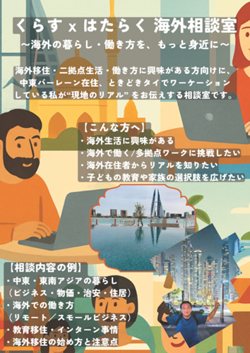 〜海外での暮らしや働き方を、もっと身近に〜多様な働き方や小さなチャレンジを応援する拠点、 新宮CoCoスクエア(所在地:福岡県糟屋郡新宮町)は、 バーレーン在住の海外起業家 白井千晶(Chiaki Shirai) 氏と連携し、 新たなアクティビティ「くらす×はたらく 海外相談室」を開始しました。本企画は、海外移住や教育移住、二拠点生活、フリーランス活動などに関心のある方へ、海外で暮らす...