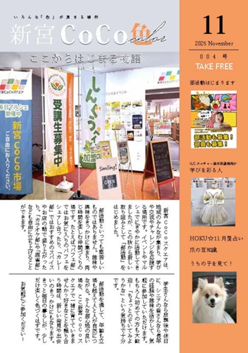 フリーペーパー『新宮CoCo色』11月号 発行のお知らせ地域の学びとつながりを応援する、新宮CoCoスクエア発のフリーペーパー『新宮CoCo色』。 2025年11月号(第4号)が完成しました。今月号も、新宮CoCoスクエアを中心に展開されるさまざまな活動や人々の思いを、ぎゅっと詰め込んだ内容となっています。紙版は施設内で配布中、PDFでもご覧いただけます。どちらの形でも、ぜひ手に取ってお楽しみくだ...