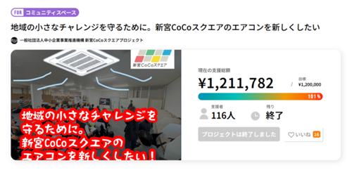 感謝! 新宮CoCoスクエア クーラークラファン、無事達成しました!